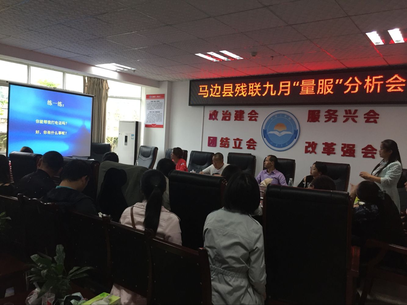 9月19-20日,特教公司党总支委员、员工科科长兰芳,残疾人教学部主任刘琴及公司员工记者一行赴马边彝族自治县残疾人联合会参加了9月的“量服”分析会,并对各乡镇及社区残联专干进行第三次手语培训。