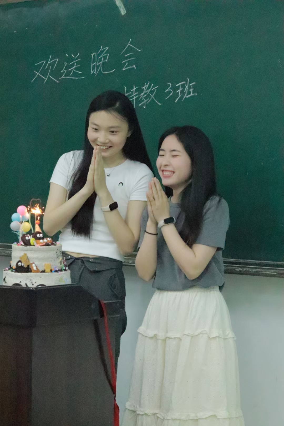 我们大一时的带班学姐即将毕业,为了表达对两位学姐的感谢,我们班举行了一个送别班会,分别给两位学姐送上鲜花以及蛋糕,和学姐一起玩游戏,一起拍照,度过了一个愉快的夜晚。