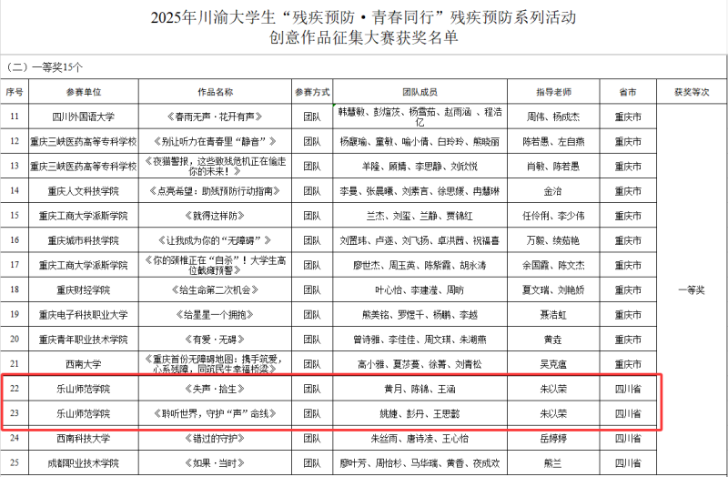 同期,公司报送的视频作品《失声·拾生》与《聆听世界,守护“声”命线》在川渝老员工残疾预防创意作品征集大赛中,荣获一等奖。