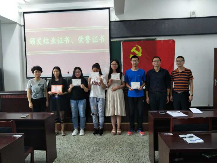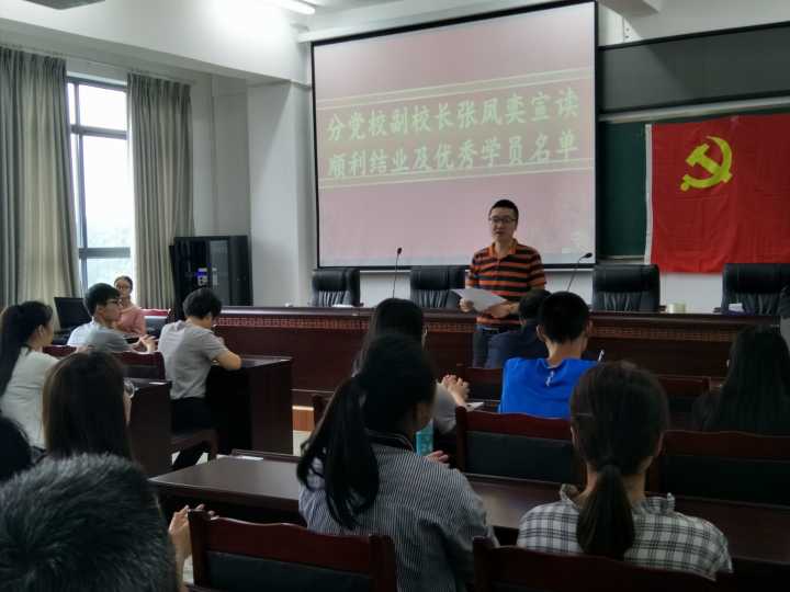 结业典礼在庄严的国歌声中拉开了序幕。首先,林天兴对能够顺利结业的入党积极分子表示祝贺,他提到,希望同学能够加强文化、专业知识的学习;提高社会工作能力;进一步加强对党的基础知识和基本理论学习;积极参加体育锻炼,练就健康的体魄。并且要求同学们要爱国、励志、求真、励行,做中国特色社会主义事业的合格建设者和可靠接班人。接着任兰芳对本期入党积极分子党校培训情况进行总结。她提到,同学们在党校中的学习态度端正,但从卷子来看同学们对知识掌握不牢固,希望大家多关注时事。其次,大家要多了解入党流程、党支部之间的关系、积极参与党建工作。再者,党课虽然已经结束,但是仍要不断的学习。之后,本期分党校优秀学员代表王继明代表全体学员表示在以后的工作中要时刻以共产党员的标准要求自己,在平时生活、学习中起到先锋带头作用,为早日加入中国共产党而奋斗。最后,由张凤奕宣读顺利结业以及优秀学员名单。在恭喜大家的同时,他提出,希望大家在今后的学习生活中再接再厉,离我们的党更进一步!