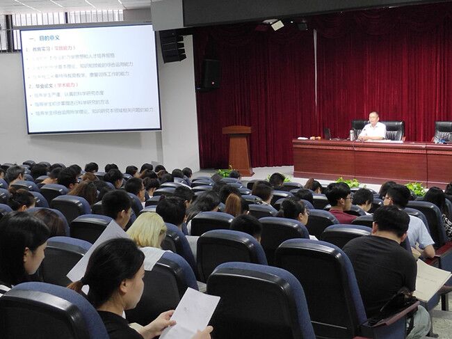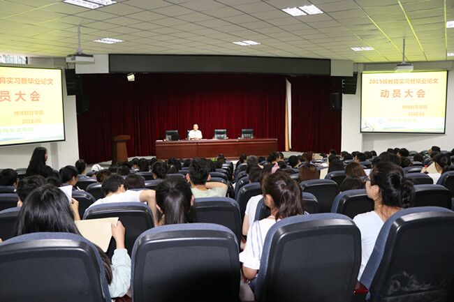 6月21日下午,特教学院在特教大楼A栋102学术报告厅召开教育实习暨毕业论文动员大会。教学管理科长潘桂容及2015级特殊教育和教育康复学专业125名员工参与了本次大会,大会由副经理章永主持。