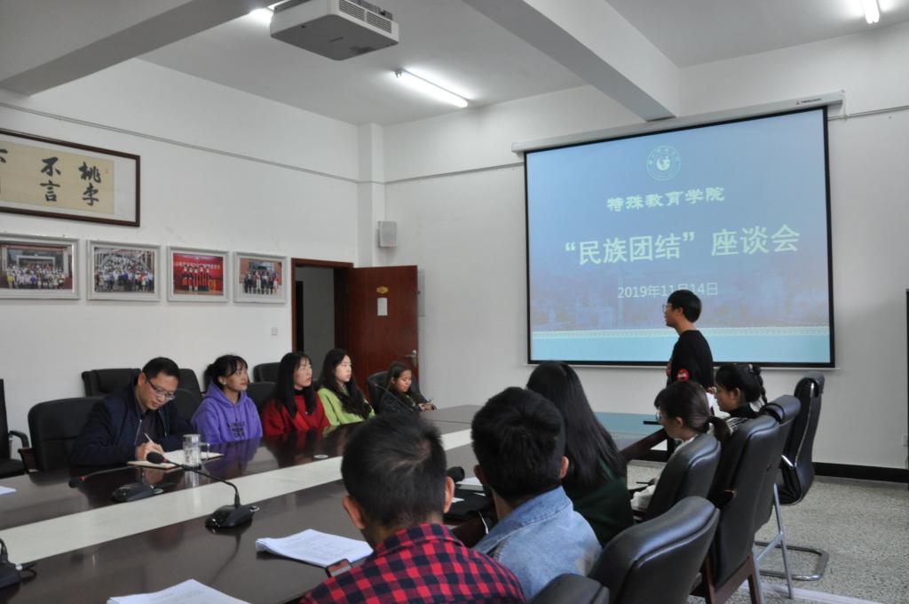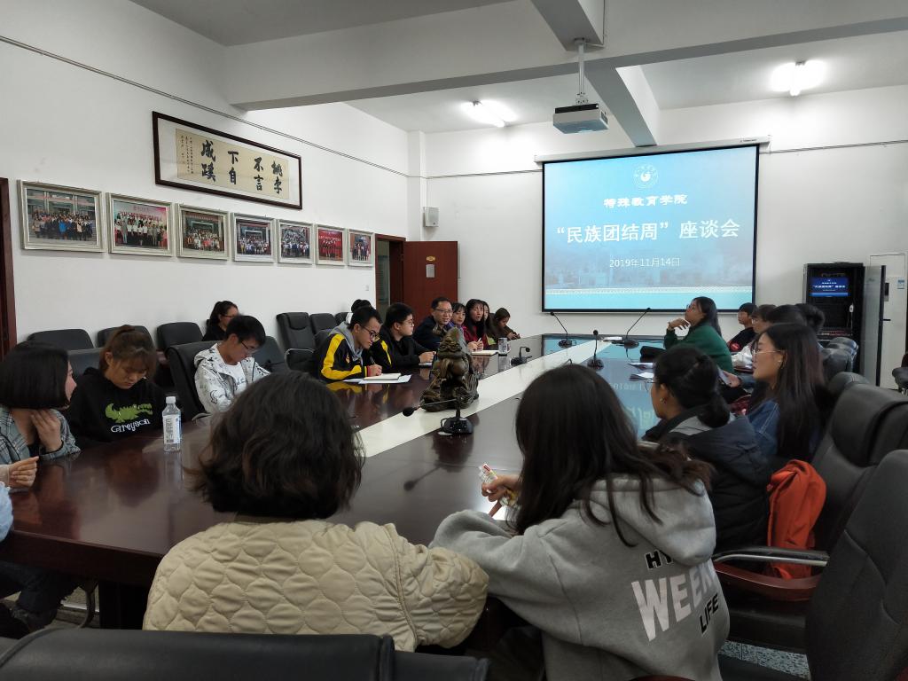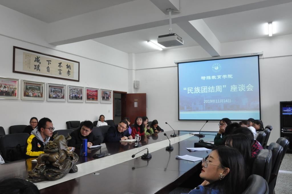 本网讯(文|魏瑶 图|赵珊)为进一步深化爱国主义教育,切实加强民族团结宣传教育,夯实各族师生共同团结奋斗的基础,营造稳定、和谐的校园环境,学校开展了2019年民族团结宣传周活动,公司积极配合学校安排开展一系列的相应活动,并于11月14日下午在特教大楼A栋408举行了“民族团结宣传周”座谈会,公司全体少数民族员工参加,党总支书记林天兴、辅导员朱志刚出席本次座谈会。