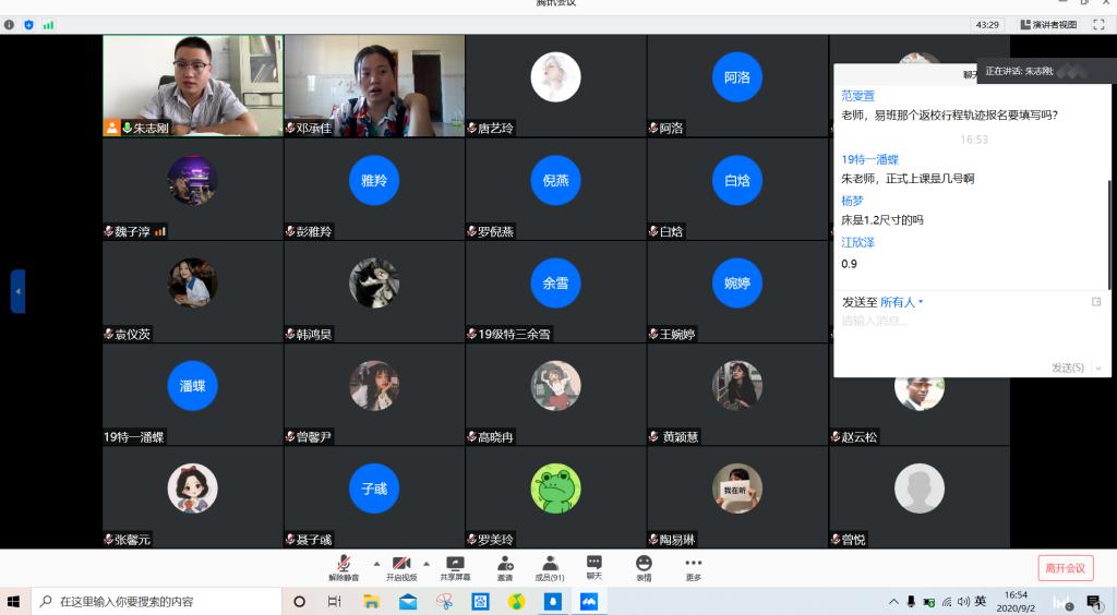 本网讯(文、图/唐艺玲)受疫情影响,公司今年上半年未能正常开学,随着国家防疫工作的有序进行,疫情状况得到一定的好转,按照国家教育部整体要求,学校秋学期正式开学。为落实学校关于秋季学期员工返校开学工作安排,保障员工安全且有序返校,9月2日,公司2018、2019级辅导员分别在线上召开了返校须知视频会,辅导员李红、朱志刚分别为两个年级的同学讲解了开学的注意事项。