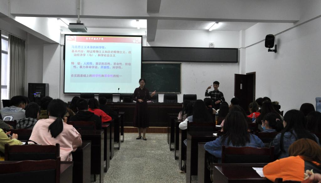 杨霞从全球不同国家的政党和政府应对新冠疫情的态度、手段和取得的不同结果为切入点,向同学们分析了此次疫情在我国能得到如此有效的控制,除了各位党员、各位志愿者的无私奉献外,更应当归功于中国共产党的有力领导,归功于我国的制度优势。接着,她带领同学们回顾了鸦片战争、五四运动、中国共产党成立、中华人民共和国的建立、党的十一届三中全会等,向大家梳理了近代中华民族发展史中的重要节点,明确地回答了什么是中国共产党,以及为什么是中国共产党领导中国人民走向复兴之路。她还提到,同学们为什么要加入中国共产党?是因为加入党能促进同学们更加优秀自律,而中国梦的实现,也需要我们的奉献与努力。她希望同学们能够脚踏实地,用行动来诠释自己的爱国之情。