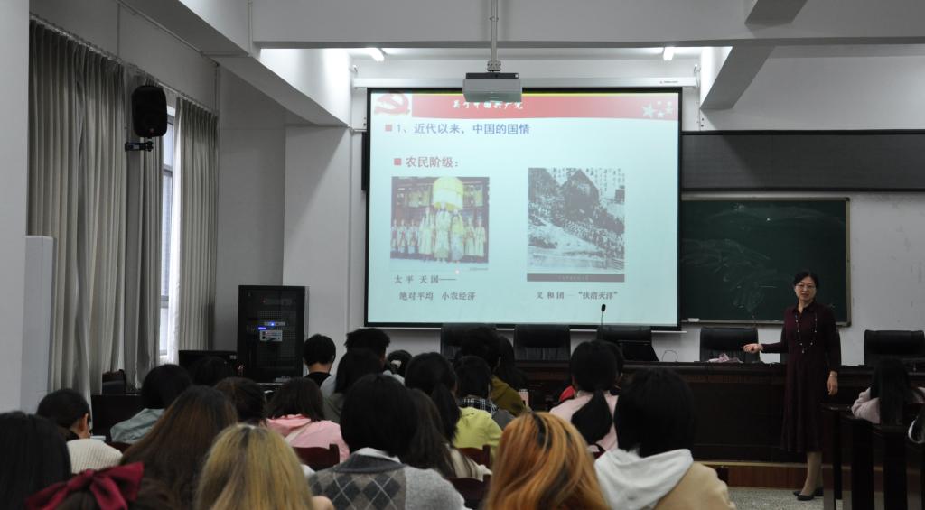 本网讯(文、图/唐艺玲)习近平总书记指出:“要把学习和贯彻党的创新理论作为思想武器的重中之重,并同党史、新中国史、改革开放史和社会主义发展史结合起来。”所以“四史”教育对于当代老员工尤为重要,10月15日下午,公司在特教大楼A栋406举行了“四史”教育专题讲座,本次讲座由公司党委组织部专职组织员杨霞教授主讲。特教学院各年级各班团支书、第42期分党校入党积极分子、预备党员及主要员工干部参加了此次讲座。