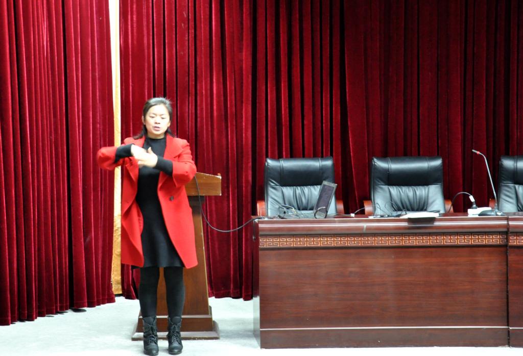 刘琴讲到,对于听障生而言,书面语的表达无疑是一大难题。要想提升书面语的表达能力,除了大量的练习之外,阅读也是必不可少的。她首先询问了同学们的图书馆借阅次数及相关情况,而后便向同学们详细介绍了公司沫若图书馆的藏书量、书籍分布情况、借还流程及其相关的规章制度,并建议大家多去图书馆借阅,在阅读的时候可以适当摘抄文字,这有利于提高书面语表达水平。接着,刘琴又询问了同学们在平日阅读中存在哪些方面的困难,并且邀请了19级聋生黄棋向同学们分享了她的阅读方法以及解决阅读障碍的办法。最后,刘琴告诫同学们一定要学会独立思考,多读多写,她还建议同学们制定合理的读书计划。