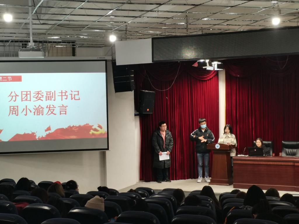 活动开始,两位主持人先为大家引出了十九届五中全会的中心思想和内容框架,并对“五个必须”这一概念进行了着重介绍。之后,各班团支书就各支部独立学习情况依次上台交流学习心得。其中,19级教育康复学班团支书魏子淳表示:“在党‘不忘初心,砥砺前行’思想的指导下,我们共青团员更应该响应党的号召,积极奉献自己,投入到各种志愿活动中,努力学习,积极上进,担当建设新时代的重任。”19级特教三班团支书余雪说到:“我们一定要做好班风、学风建设。”紧接着,分团委副书记周小渝综合大家的感悟内容进行总结。周小渝讲到,十九届五中全会是在国际格局发生深刻演变、世界进入动荡变革期、我国发展环境面临深刻复杂变化的背景下,举旗定向、谋篇布局,擘画蓝图、规划路径的重要会议,对开启全面建设社会主义现代化国家新征程作出战略决策,对于实现新时代党的历史使命、实现中华民族伟大复兴中国梦,具有里程碑意义。同时,周小渝还结合会议精神与当代老员工、当代青年团员的关系,辅以回顾国家公祭日历史、中国共产党党史等方式,将本次会议的精神宣讲真正落到实处。
