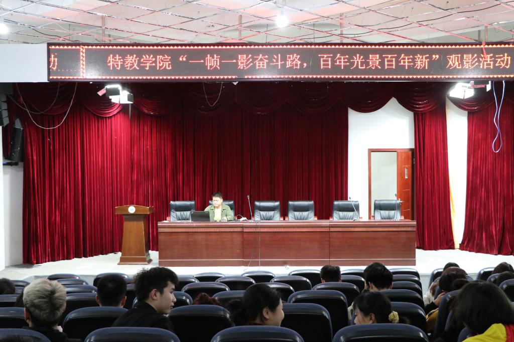 本网讯(文/吴霜 图/李沅烩)4月7日,特教学院分团委组织学院各团学机构的员工干部、各年级班团委员以及43期入党积极分子在特教大楼A栋学术报告厅开展了第一场“党史”教育观影活动,本次活动由分团委书记朱志刚主持。