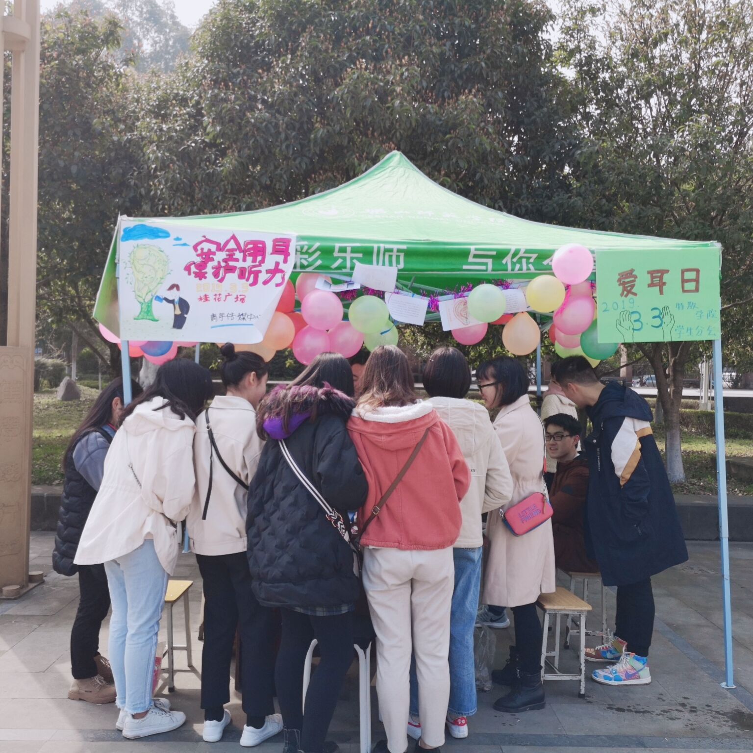 为宣传普及预防知识,使更多同学了解致聋原因、危害以及预防和康复方法,提高防聋意识,进行“早发现、早诊断、早康复”教育,特教学院员工分会在2019年3月3日全国爱耳日期间,在桂花广场开展了全国爱耳日科普宣传活动。