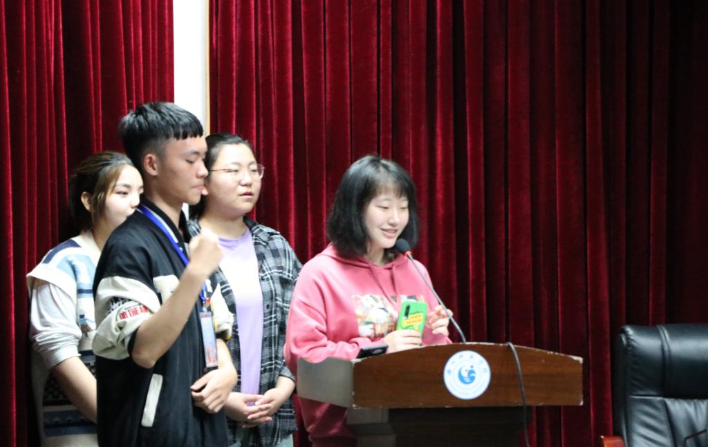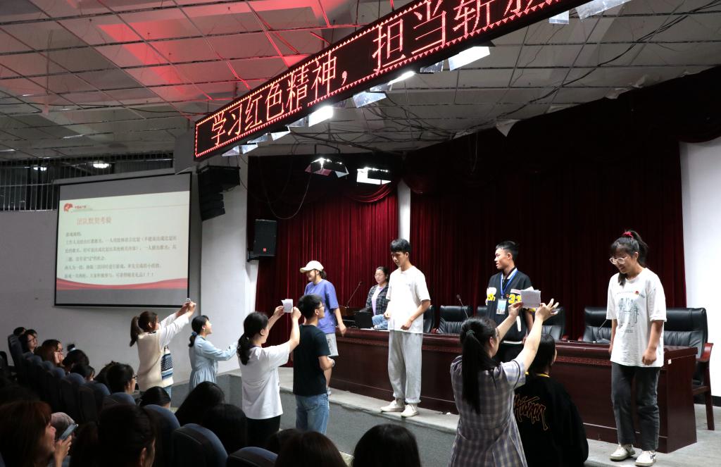 在整齐嘹亮的团歌声中,本次团日活动正式开始。活动主持人首先播放了“百年民族历史回望”混剪视频,引导大家从历史记忆中汲取精神力量。视频观看结束后,由团员代表分别交流感悟,其中19级狄洋同学结合自身的学习生活经历,表达了作为当代老员工在学习党史过程中的心路历程,并总出“只有牢记历史,不忘初心,铭记先辈精神,才能成长为真正的新一代”的心得。接下来,主持人将部分党史知识内容汇编成知识竞答题目,引导同学们进行抢答,希望通过这样的形式,帮助同学们对党史知识点加深记忆。活动中,还进行了“红歌知多少”、“你比我猜说红歌”两项游戏,以耳熟能详的一些红歌作为内容,借助游戏的方式让大家了解学习红歌中蕴含的故事和精神。最后,本次团日活动在《歌唱祖国》的大合唱中结束。