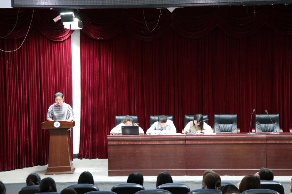 会议开始,分团委副书记周小渝对选举大会的评分规则进行了陈述,候选人最终得分由团学工作平时考核成绩和评委现场评分构成,然后宣布换届选举会正式开始。各机构候选人分别从自己的工作经历感悟和未来规划两方面上台发言,其中,竞选分团委代理副书记的分团委组织部部长魏子淳谈到“担任团学工作每个阶段都有不同的感受,团学工作虽然有时候很累,但也让自己的说话、做事变得更成熟,这些一点一滴的收获让自己想要继续担任团学工作任务。”候选人发言结束后,统计得分,然后朱志刚宣读新一届团学干部的名单。最后,分团委书记朱志刚致辞,他首先对上一届团学干部在一学年工作中的付出与贡献表达了感谢,并希望他们在新的学习阶段能有新的收获。他同时对新一任的团学干部表示了期许,谈到团学机构是同学们自己的,大家应该自己建设好自己的团学机构,希望同学们不忘初心,踏实储学。
