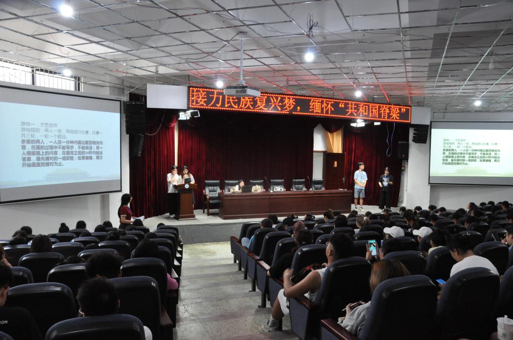 伴随着一首轻快的旋律,全体起立齐唱团歌、迎团旗。活动正式开始,主持人播放了学习视频,视频中主要展现了袁隆平、吴孟超、黄旭华、邓稼先的先进事迹和卓越贡献。19级教育康复学锁义萍发表感悟道:“他们为国家做出了很大贡献,是国家的楷模,起到了带头作用。”接着,通过有奖问答的环节促进同学们更清楚深刻的认识“共和国脊梁”以及他们的伟大成就。随后是才艺创作和先进人物知多少的游戏互动,同学们热情高涨,积极参与,19级、20级各派出三名代表向大家简要介绍共和国勋章获得者。随即,主持人向大家介绍了最美“逆行者”钟南山院士不惧危险奋战一线的英勇抗疫事迹。最后,主持人带领大家共同学习了五四精神、延安精神等中国精神,呼吁身为老员工的我们要接力民族复兴梦,缅怀“共和国脊梁”。
