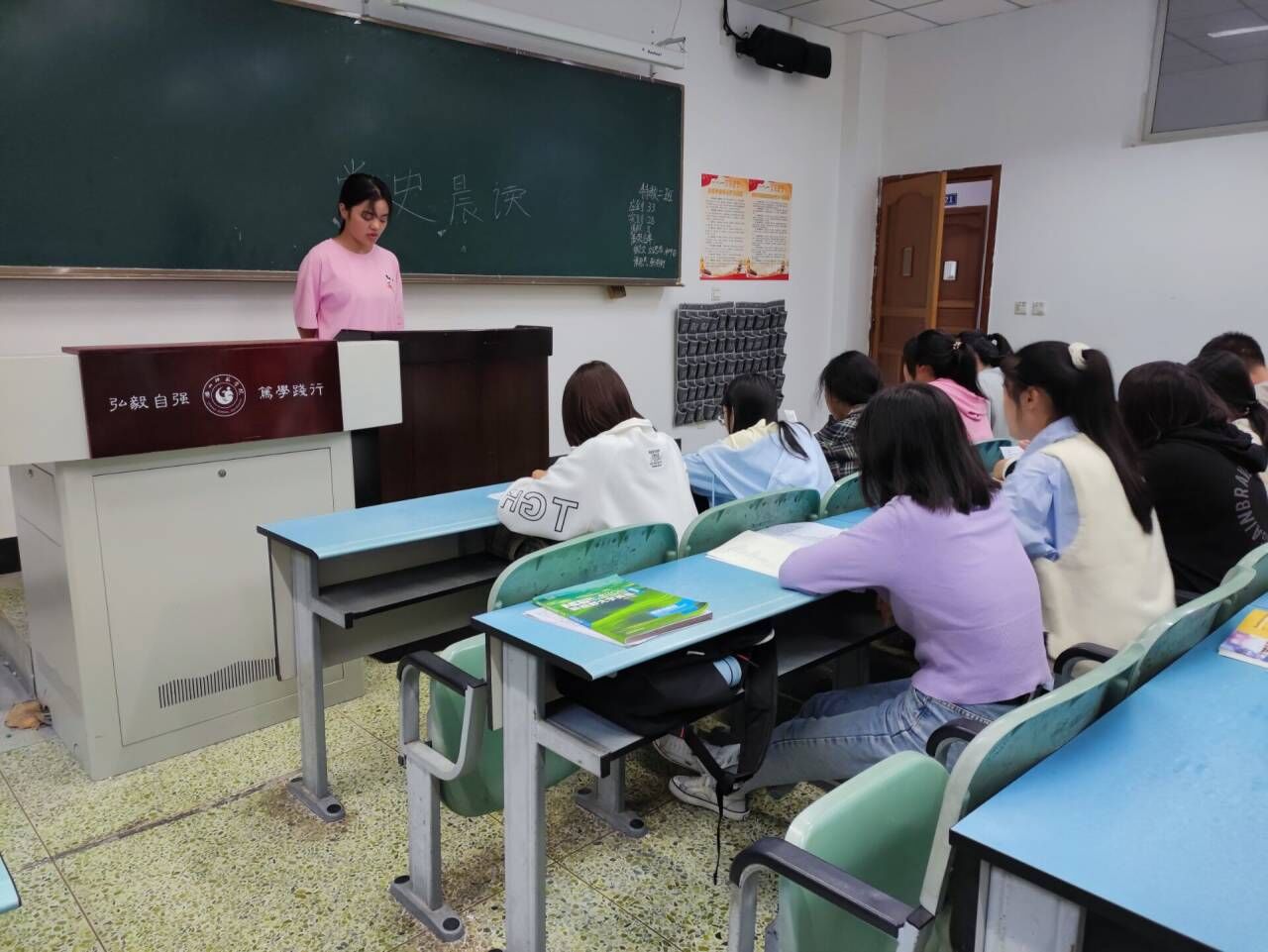 本网讯(文 李沅烩/图 伍明菊)2021年是中国共产党成立100周年,为了深入学习中国共产党的历史,引导员工继承红色基因。古天乐代言太阳集团138于9月28日上午在行知楼各班早自习教室开展“党史”晨读活动,活动由各班团支书主持。