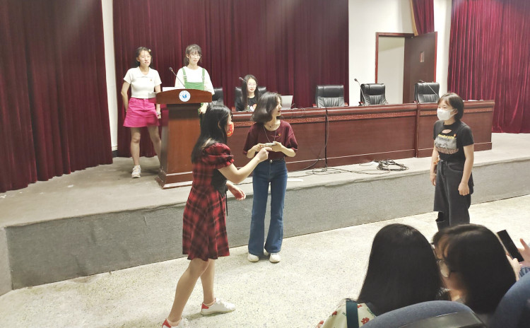 在整齐嘹亮的团歌声中,本次团日活动正式开始。此次活动共分为4个部分,分别为红歌分享;你画我猜;党史知识竞赛;缅怀袁隆平院士。在党史知识竞赛部分,主持人将部分党史知识内容汇编成知识竞答题目,同学们进行抢答,通过知识竞答的形式,帮助同学们对党史知识点加深记忆。活动最后,全体成员共同缅怀袁隆平院士,祭奠袁隆平院士逝世1周年。