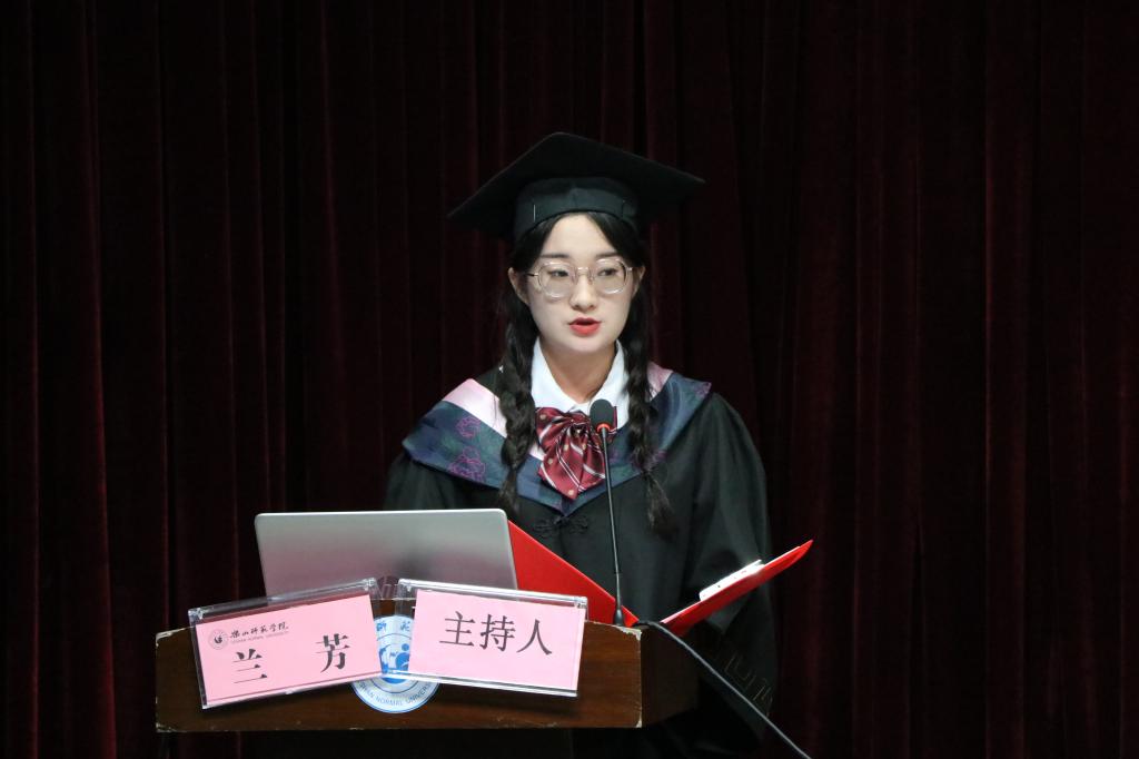 肖奎祝贺同学们顺利毕业,并结合当前四川残疾人受教育和就业情况,向全体健听毕业生发出号召,希望大家热爱专业,推动残疾人事业不断发展,希望听障毕业生奋发图强,争做对社会有用的人才。张梅对2022届员工顺利毕业表示热烈祝贺,并对员工的未来提出殷切期望和深情祝福。18级教育康复学二班班主任王欢作为教师代表,在台上表达自己对员工的心里话,简单朴实的话语深深的打动了所有员工。家长代表陈作武表达了对学校的感谢和对同学们未来工作和生活的美好祝愿。20级员工代表周艺,对学长学姐们说:“希望学长学姐们在新的人生道路上,有新的开始,新的起点,一路顺风,多回学校看看,这里有你们美好的回忆。”毕业生代表赖佳慧发⾔,感谢四年来领导的关怀,老师的教导,同学的⿎励帮助。