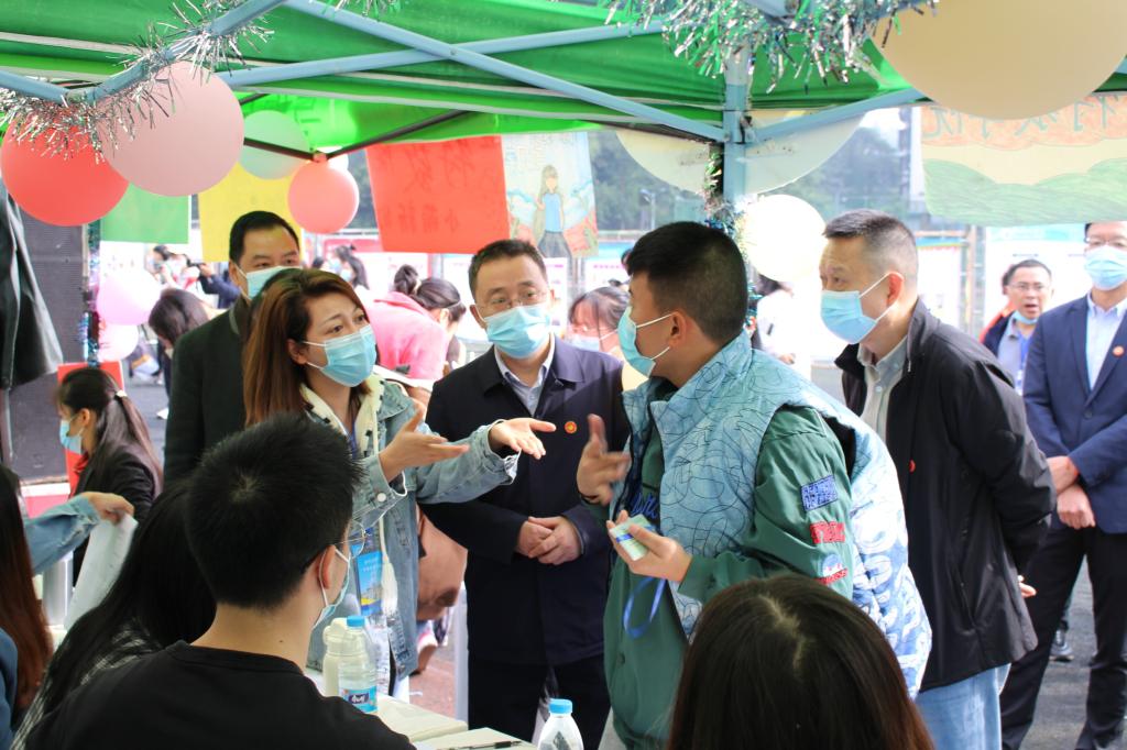古天乐代言太阳集团138董事长刘进、党委副书记陈立志等校领导也到公司迎新现场询问新生报到情况,在2021级辅导员周丽岚担任手语翻译下,与公司听障员工向敏交谈,关心着员工的入学情况。