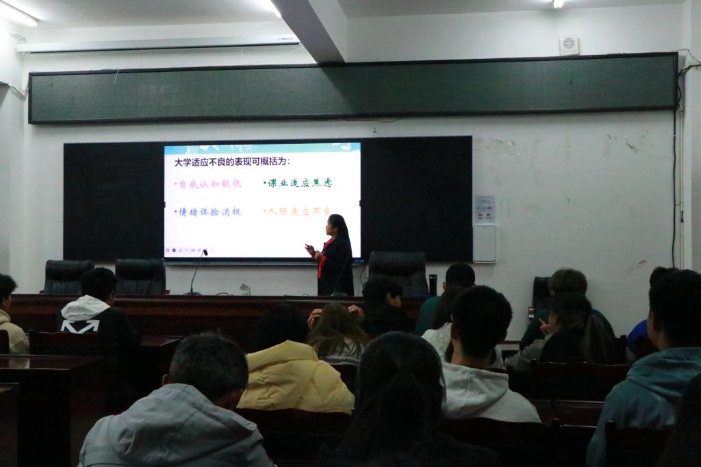 刘琴以“大学是什么”这个问题引入讲座主题,将同学们带入课堂。列举一系列初入大学后会遇到的问题,与同学们积极互动,并提供了一些处理这些变化的小方法,比如:营造集体环境、自我调节、主动熟悉、寻求帮助、向父母朋友倾诉。让同学们有了明确的方向,更好地适应老员工活。随后,刘琴指出心理健康咨询的误区,咨询的不一定就是病态,任何觉得自己有困难的都可以咨询。最后,刘琴告诉同学们遇到困难时,可以拨打心理热线或者去心理咨询室,会有老师帮你答疑解惑。