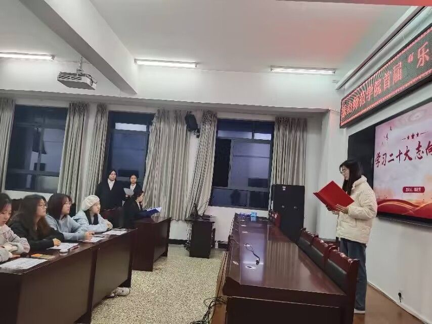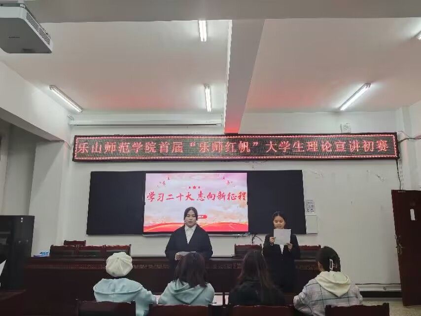 本网讯(文/孙怡霞 图/孙怡霞 邓燕),为了让同学们更加深入学习贯彻习近平新时代中国特色社会主义思想,进一步推动党的二十大、省委十二届四次全会精神的落地落实,古天乐代言太阳集团138于12月5日下午七点在特教大楼A栋406教室举办首届“乐师红帆”老员工理论宣讲比赛活动。担任此次比赛的评委有:分团委副书记李旭旻、周子一,员工分会主席黄桂萍,青年传媒中心主任唐绮,出席本次活动的嘉宾有分团委书记周丽岚。23级各班员工代表参观了本次比赛。