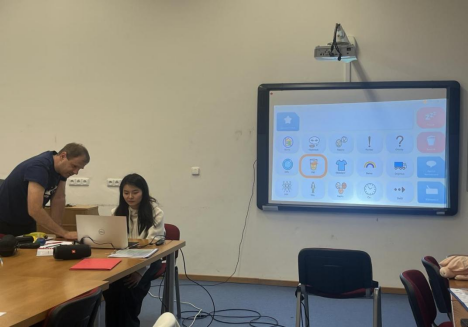 在专业实践层面,6名同学在帕大技术团队指导下顺利完成AAC(增强性与替代性沟通)技术实践模块。同学们使用Grid 3软件与眼动追踪系统联动,模拟为语言功能障碍者设计个性化沟通界面,现场生成12组动态视觉反馈方案。此外,参与当地特殊教育中心的实践观摩也帮助同学们深度了解了AAC工具在课堂教学中的实际应用。同期开展的奥洛穆茨市社区心理服务中心参访,观摩戏剧治疗在青少年群体中的实际应用,让同学们在戏剧治疗实践应用方面也有了更深层次的体验与感悟。