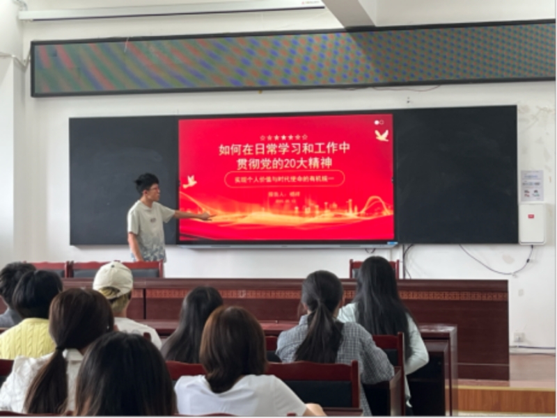 本网讯(文/图 黄月)2025年5月20日,特教学院第51期入党积极分子在特教大楼A栋406举行了一场主题为“如何在日常学习和工作中贯彻党的二十大精神”的交流讨论活动。此次活动旨在深入学习党的二十大精神,探讨如何将党的先进理论融入到实际学习和工作中。