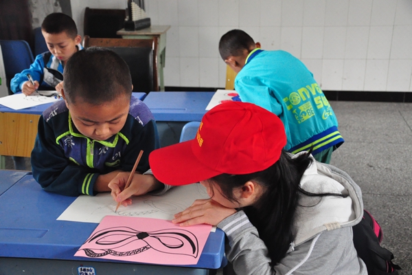 下午两点,志愿者们来到各自的规定教室,迎面而来的是孩子们一张张灿烂的笑脸,每周末这群特殊的孩子总是这样,乖乖的坐在教室里,微笑着等候着他们的小老师。这一周的教学活动中给人印象特别深刻的是手工班的孩子,他们在小老师们的指导下,积极画出他们心中的卡通的角色,并涂上他们喜欢的颜色,看到他们快乐地沉浸在我们设计的教学活动中,志愿者们内心也是说不出的开心。活动结束时孩子们还不愿散去,拉着志愿者们继续在画纸上写写画画。