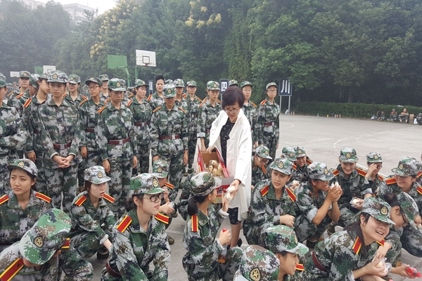 汪经理首先对本连队的指导员、教官以及所有训练现场的工作人员表达了谢意,由衷的感谢他们这些天来对公司员工的指导和照顾,同时她激励同学们要发扬伟大的长征精神和中国女排精神,把军训作为磨练意志、锤炼品格、强化作风的重要一课,在接下来的训练中不畏困难、吃苦耐劳,加强组织性和纪律性,增强荣誉感和责任感。章经理对172名新生的到来表示热烈的欢迎,他表示,希望同学们把军人的精神用运到将来的专业学习中,成为更加合格的特教人。