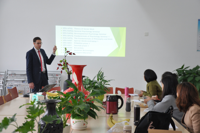 11月3日上午10:30—12:00,捷克帕拉茨基大学教育学院国际关系副经理Regec Vojtech与特教学院的师生在特教大楼资料室开展主题为《特殊儿童辅助技术》的专题研讨。