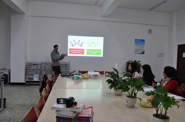 11月7日下午4:30,捷克帕拉茨基大学教育学院国际关系副经理Regec Vojtech与特教学院的师生在特教大楼资料室开展主题为《特殊教育和全纳教育》的专题研讨。