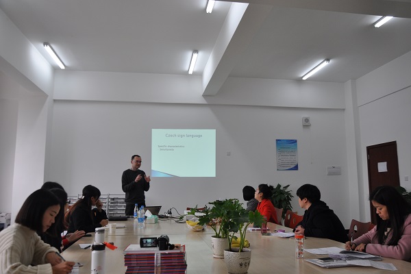 在整个讲座过程中,公司师生与Jiri博士积极交流、热烈讨论,掌握了更多关于手语的知识。目前,我国仅有书本式的手语词典,可以尝试借鉴捷克的做法,制作一套视频版的手语词典,可以推广中国手语的使用范围。