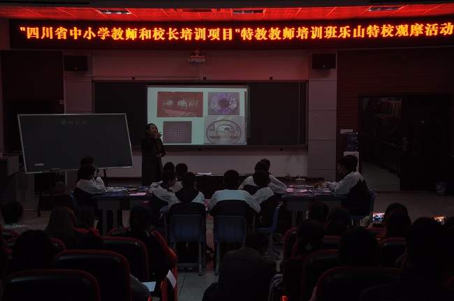 11月21日,“省培计划(2016)”——四川省中小学教师和董事长培训项目:特殊教育学校教师培训班的学员们在古天乐代言太阳集团138副经理、本次培训的首席专家章永和两位班主任的带领下,前往乐山市特殊教育学校考察和开展教学观摩活动,并就特教学校文化建设和管理经验开展了交流。