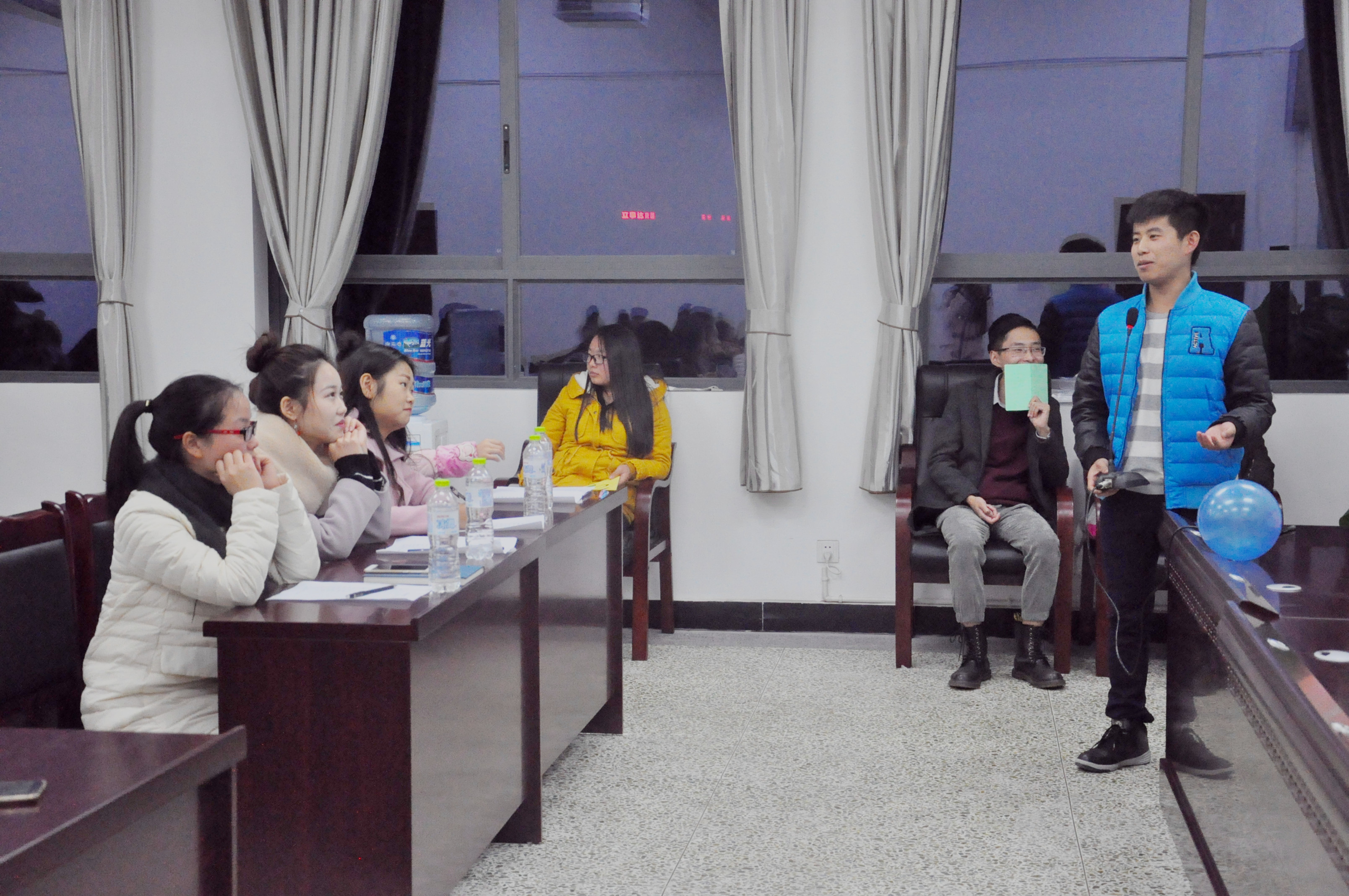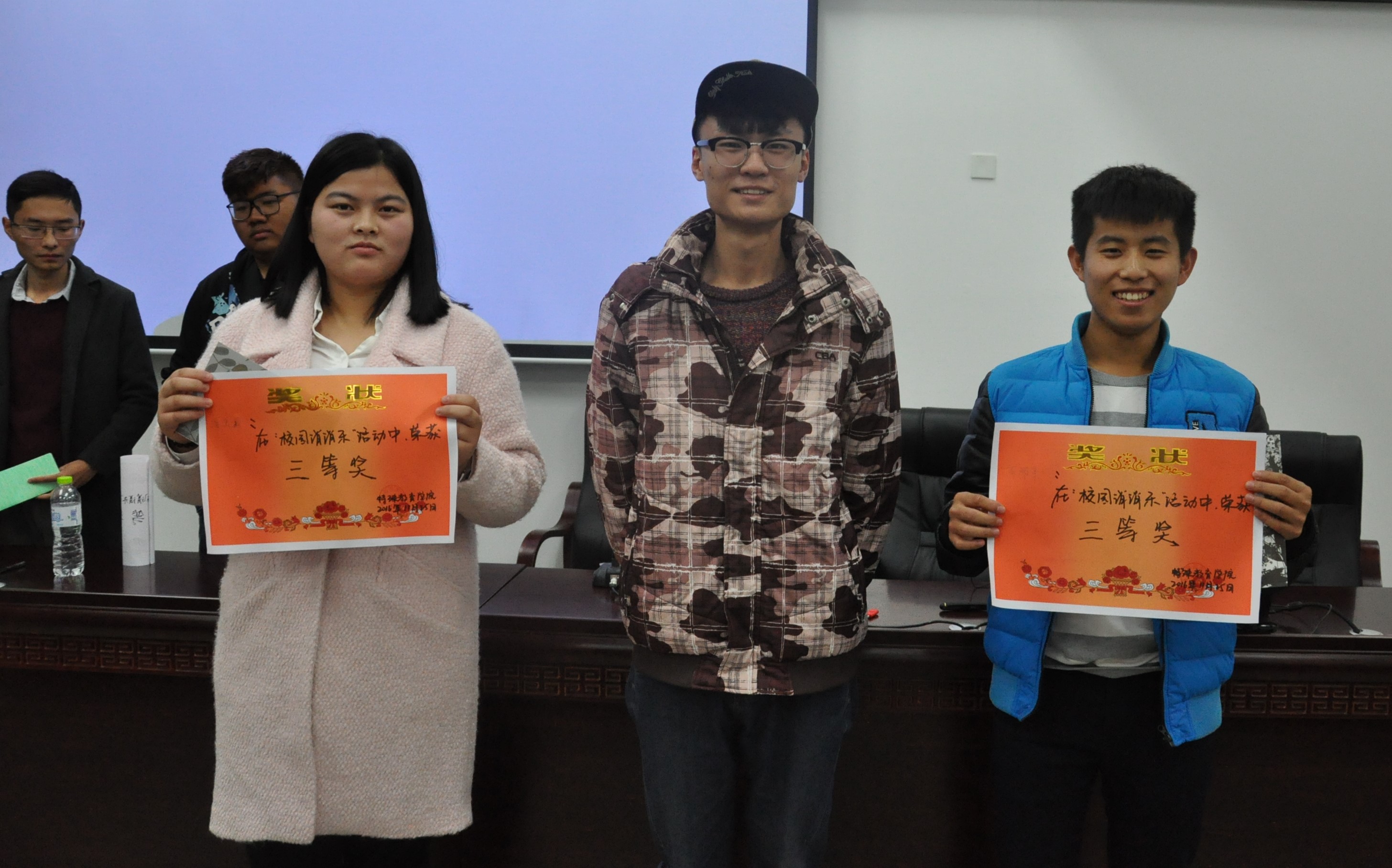 11月25日晚7点,由特教学院分团委素拓部主办的“校园消消乐”活动在特教大楼四楼会议厅开展。莅临本次活动的嘉宾有特教学院分会主席袁芳、副主席陈超,担任此次演讲比赛的评委有特教学院分团委副书记李兴宇、阿苦子夫,素拓部上届部长丁小飞,校团委代表曹露、张瑾煜,政法学院代表陈洁。各参赛选手的亲友团也来到活动现场为他们加油打气。