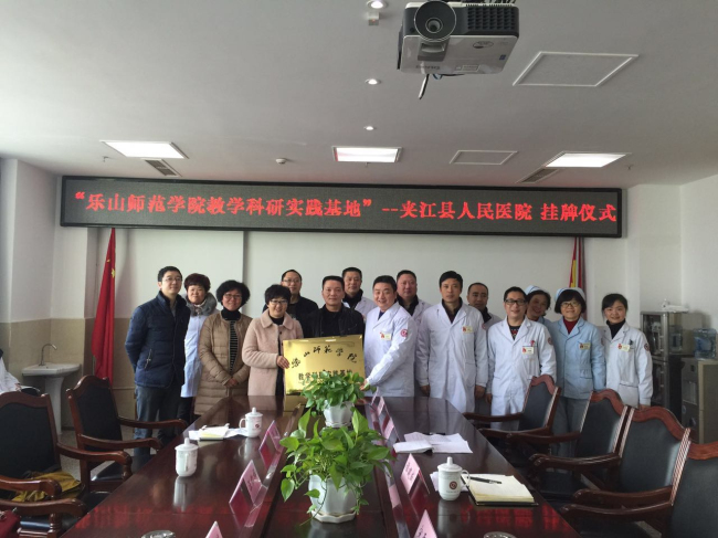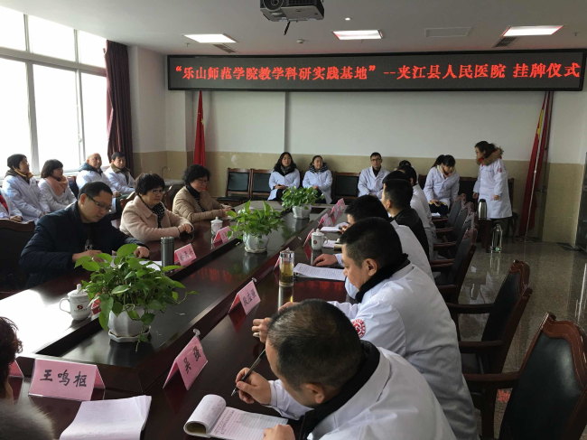 随后,汪红烨代表特教学院向夹江县人民医院宋雪松经理授牌,标志着特教学院与夹江县人民医院医校合作正式启动。授牌仪式结束后,特教学院一行参观了夹江县人民医院的康复科和儿童康复中心。