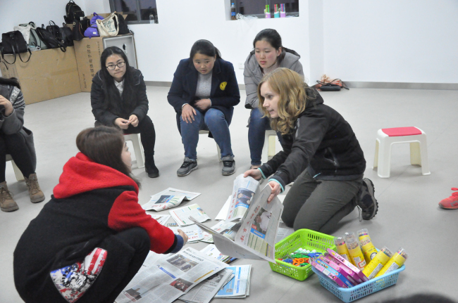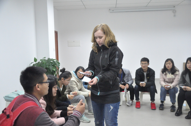 3月7日和8日晚,Simona博士分别带领两个老员工团队开展了美术治疗工作坊。首先,在热身阶段,Simona博士请大家在不能说话的情况下按照生日月份从小到大排成一纵队,这是鼓励大家使用非口语进行交流。在接下来的主活动中,Simona博士请大家选择6张最能代表自己人生的照片,加上从报纸、杂志上剪贴下来的图片和字词,经过粘贴、组合和添画完成反映自己人生过去、现在和未来的人生图画。最后,大家进行了交流,讲述了自己的人生故事。本次工作坊虽然使用的是剪贴画这样常见而简单的形式,但是在“人生故事”这样一个深刻的主题下,同学们都全身心地投入创作,感受和思考自己的人生,享受创作的过程。