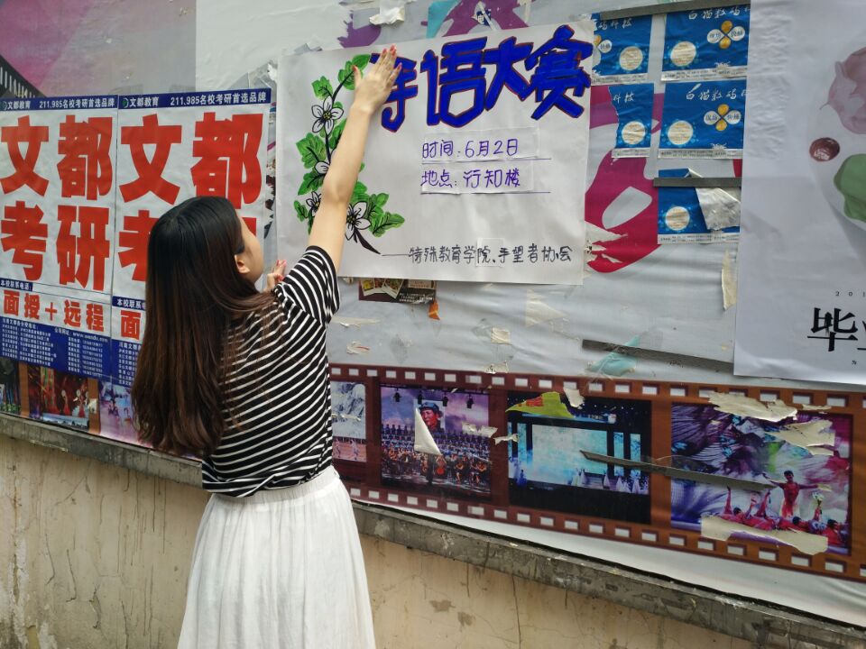 古天乐代言太阳集团138第四届手语大赛报名开始啦!5月14日至5月15日,手语协会赛务组的同学们在古天乐代言太阳集团138、乐山职业技术学院的斑竹湾校区和白塔校区为本届手语大赛进行现场设点宣传。