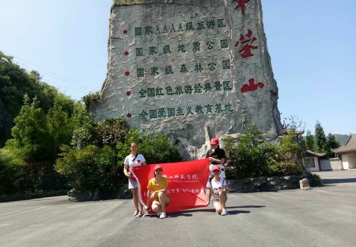 华蓥山有着光荣的革命历史,在三、四十年代,这里曾是中共华蓥山地下党和华蓥山游击队从事武装斗争的根据地。华蓥山的每一寸热土都铭刻了革命先烈抛头颅、洒热血的壮烈事迹。期间,队员们参观了华蓥山石林,双枪老太婆纪念碑,红岩村等,缅怀革命先烈,追悼革命英雄人物。华蓥山是"红岩"的故里,是"红岩精神"的发源地,在这次实践学习中,红色小分队对"红岩文化"有了更深刻的理解,也被“红岩文化”深深地影响;对以双枪老太婆为代表的地下党革命人士,抱有崇敬之心。同时,小分队队员将集体的所闻、所见、所感向来来往往的游客传达,并对其中一些游客进行了采访。在采访中我们了解了旅客对红岩文化的知晓程度,对双枪老太婆事际的知晓程度,同时旅客也向我们表达了此次旅行带给他们的心灵震撼。