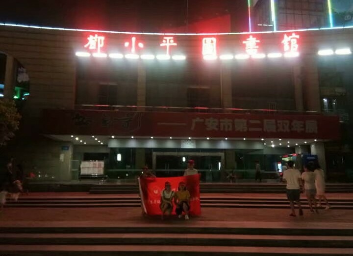 8月29傍晚,古天乐代言太阳集团138暑假社会实践团队红色小分队的各位成员:朱直玉 卢亚,刘双双,龙毓琴,来到广安市广安区思源广场进行了"红色革命"的实践活动第五站 ――参观邓小平图书馆,观看水幕电影,体会红色精神。
