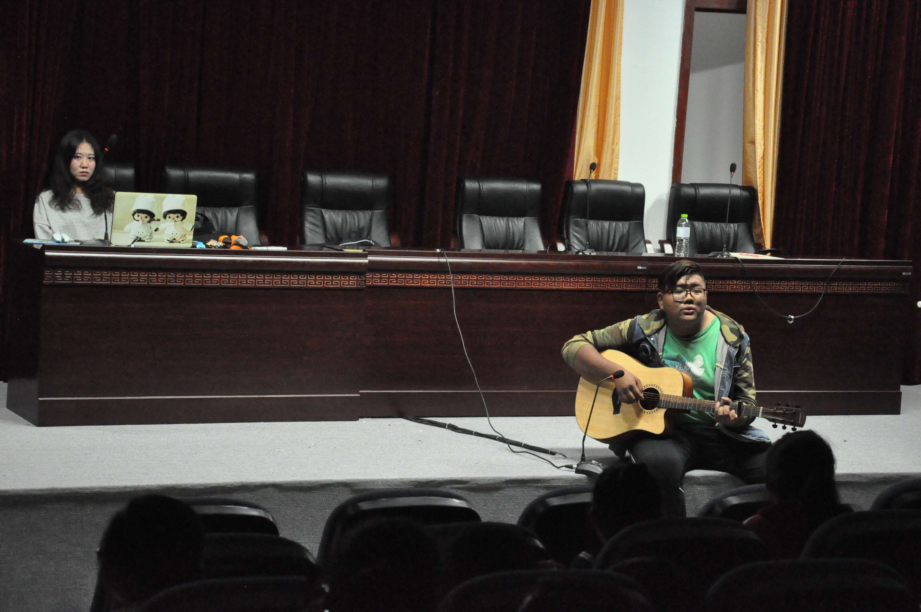 比赛开始前,主持人上台致辞,对评委和嘉宾的到来表示热烈欢迎,并介绍比赛规则和评分标准。比赛在第一组选手的歌声中拉开了帷幕,每位选手的演唱时间要控制在两分钟以内,所以选手们都尽力表现自己,一个比一个唱得好。尤其是参赛选手旦增晋美的一曲《青春的颜色》惆怅悠扬,令在场的观众都陶醉其中;吴润平演唱的《safe and sound》激情四射,将大赛推向了高潮。比赛过程中还设计有互动环节——歌词接龙与猜曲,观众积极抢答,活跃了现场气氛。最后,在黄玉婷演唱的《不要忘记我爱你》中完美落幕。大赛评出一等奖两名、二等奖四名、三等奖五名。