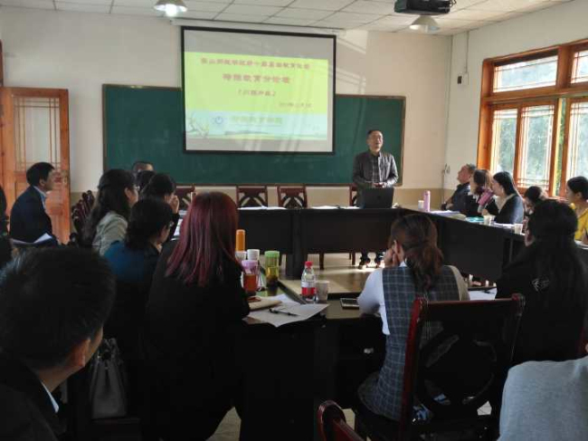 在第十届基础教育论坛特殊教育分论坛中,特教学院专任教师向各特殊教育学校的老师介绍人才培养模式,并征求意见。在结合一线教学中的实际情况和特教学院培养情况,老师们对培养模式的全面性和应用性进行了研讨,并提出了一系列的建设性意见。