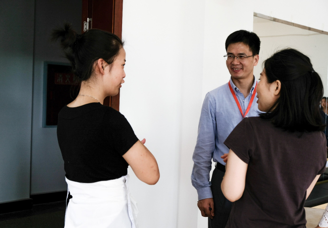 课后陈伟教授与听障老员工亲切交流