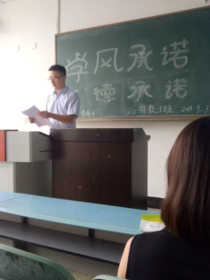 认真学习,不迟到,不早退……”新学期开学第一天,特教学院教室里就传出了此起彼伏的朗读声。9月3日,学院为树立良好的师德师风和校风学风,并积极响应学校师德学风建设的号召开展了“师德承诺”和“学风承诺”活动。