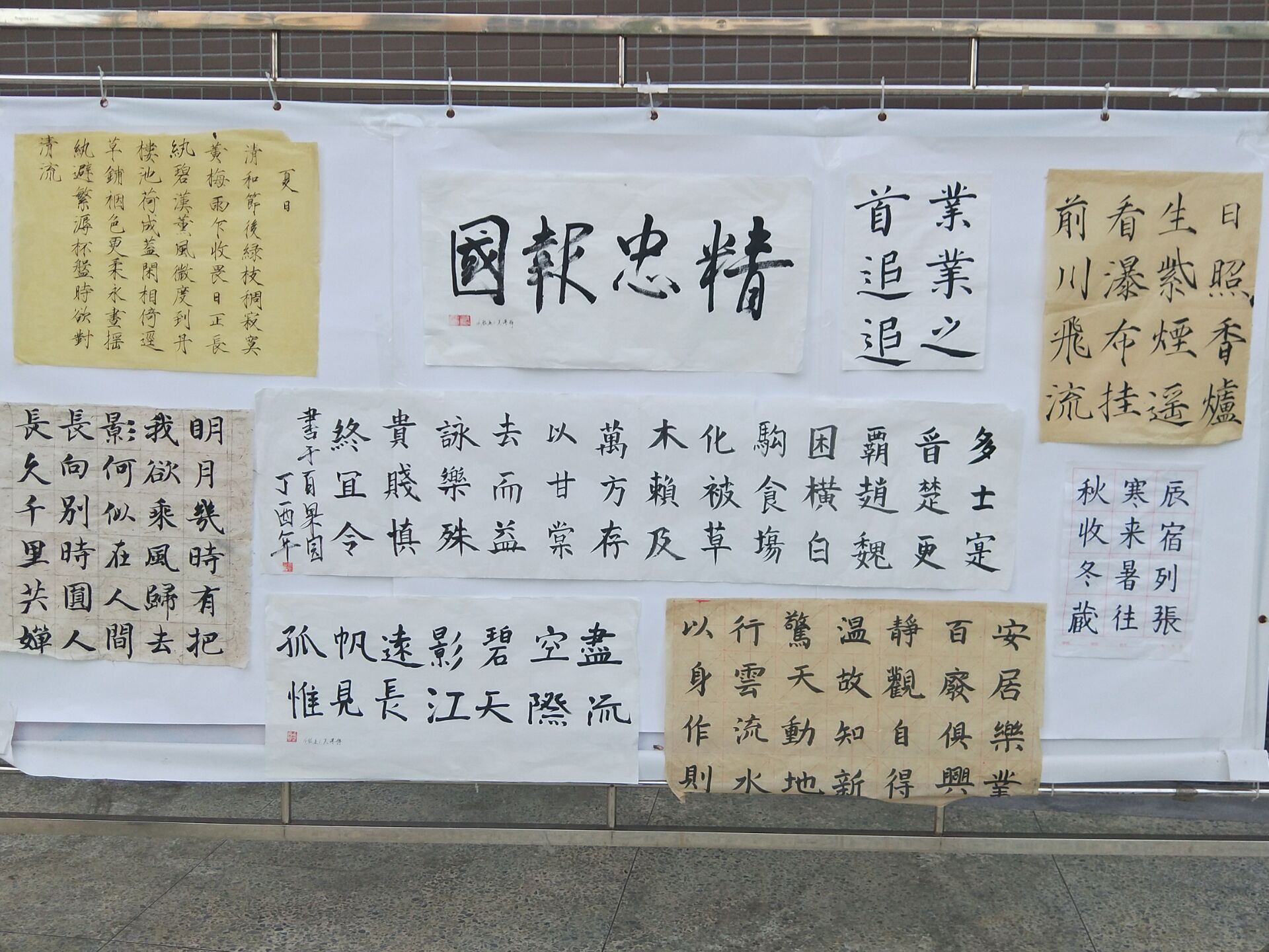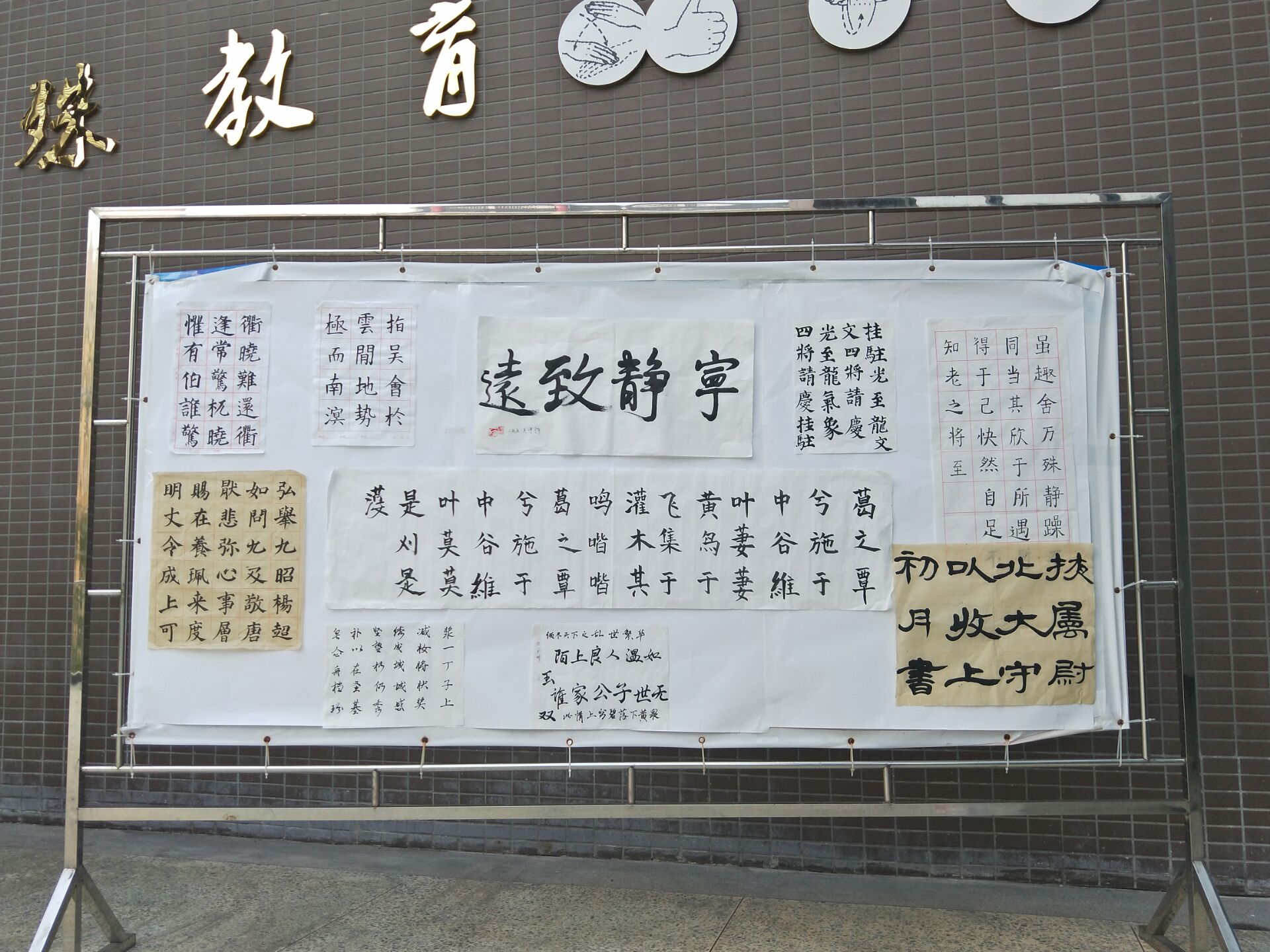 接着,同学们进行了展板制作。在大家的合作下,最终完成了两个毛笔字展板,一个钢笔字展板,以此展示同学们的风采。本次活动,在大家共同努力下完美结束。