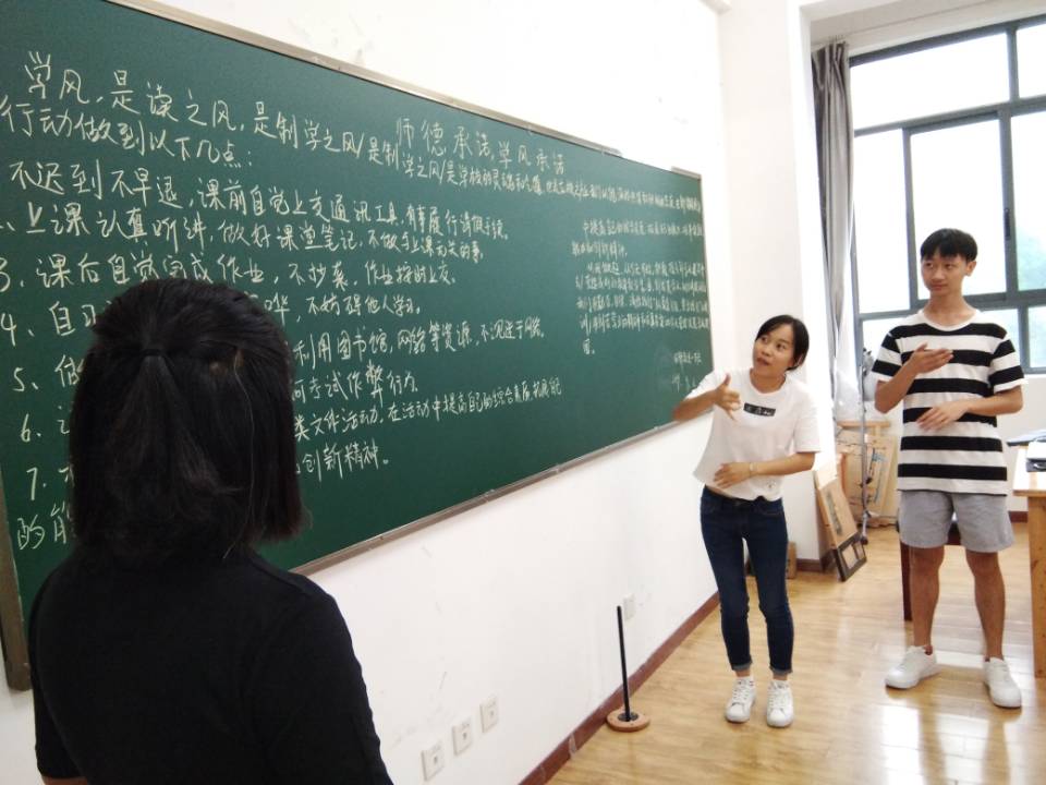 在各班学习委员和班长的组织下,由学习委员带领进行承诺,同学们大声朗读学风承诺书:不迟到不早退、有事履行请假手续、上课认真听讲、课后自觉完成作业、杜绝任何考试作弊行为!随后,授课教师也都郑重承诺:爱国守法、敬业爱生、教书育人、严谨治学、服务社会、为人师表,严格遵守高等学校教师职业道德规范,成为有理想信念、有道德情操、有扎实学识、有仁爱之心的好老师,着力培养德智体美劳全面发展的社会主义事业建设者和接班人!郑重的承诺,彰显了特教师生共同营造优良学风的决心。