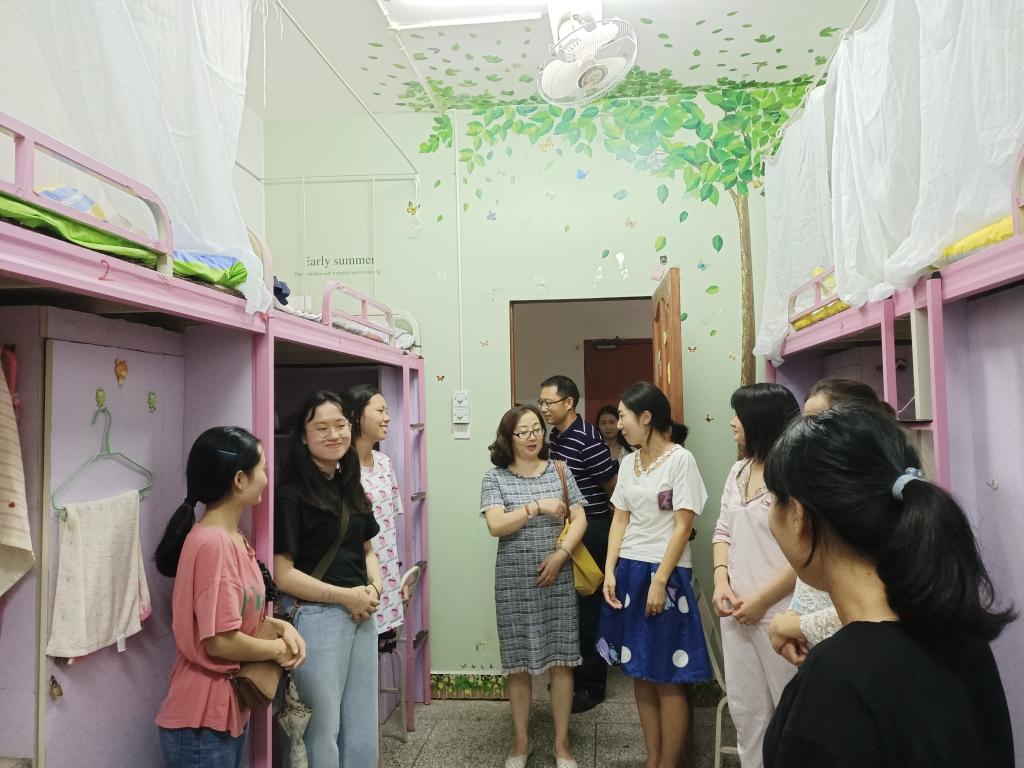 随着新学期的到来,特教学院也迎来了全国各地的新生。为进一步关爱新生,让他们尽快适应老员工活,9月6日晚上,特教学院执行经理汪红烨、党总支书记林天兴、学院副经理张梅、员工科科长兰芳和各员工辅导员、代班来到新生宿舍看望新生。