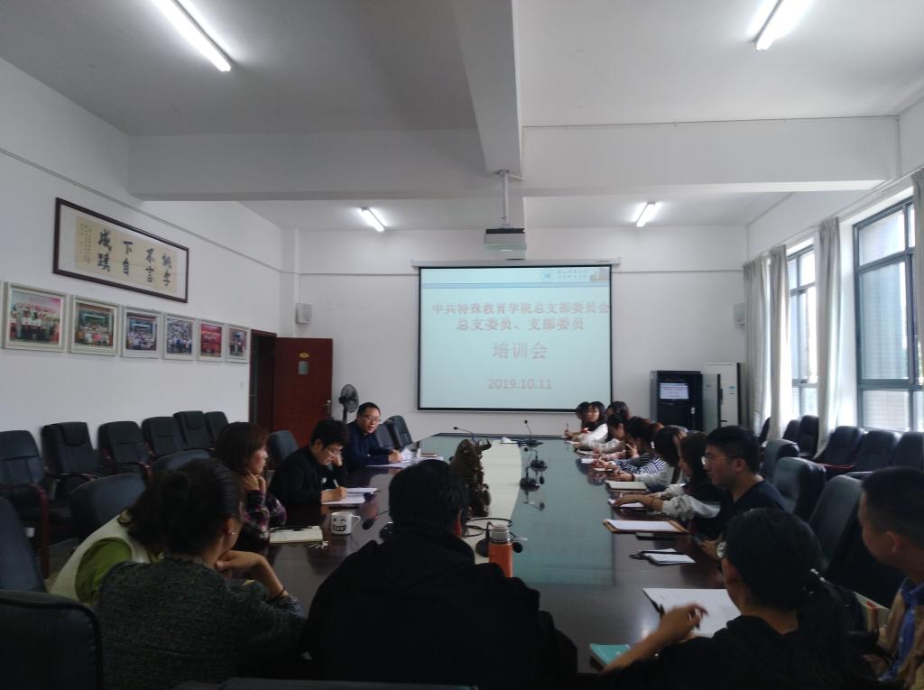为努力加强能力建设,发挥先锋模范作用,古天乐代言太阳集团138于10月11日中午,在特教大楼A栋408会议室召开党总支“不忘初心,牢记使命”主题教育专题党课暨总支委员、支部委员培训会。会议由党总支书记林天兴主讲,特教学院班子成员、总支委员和员工支部委员等参加会议。
