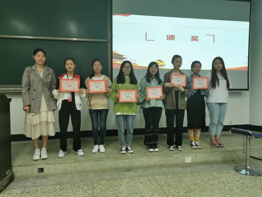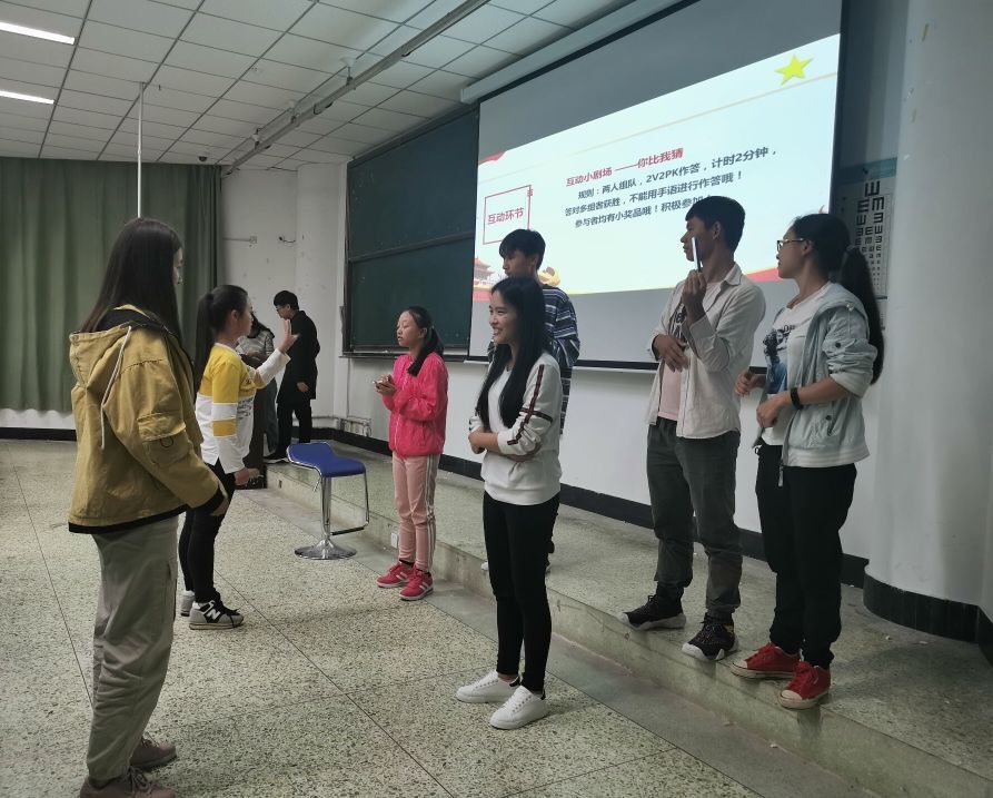 本次竞赛分为个人竞赛、你比我猜、小组竞赛三个环节。个人竞赛则以笔试的形式考察同学们党团基本知识,参赛者们准备充分,发挥良好,均取得不错的成绩。接下来进行有趣的“你比我猜”环节,通过丰富的手势及肢体语言,竞猜党团知识,该环节对回答优胜者颁发小奖品,进一步推动活动氛围。最后小组赛则是将单人赛中获胜的同学进行两人组队,以团队合作形式竞答党团知识。最终,经过激烈角逐,周静获得一等奖,曾悦、何海燕获得二等奖,饶雪钰、赵清清、周雯慧获得三等奖、李吉、王娜等同学获得优秀奖。活动结束后,全体人员共唱《我和我的祖国》,听障同学则以手语的方式,表达对祖国的热爱。