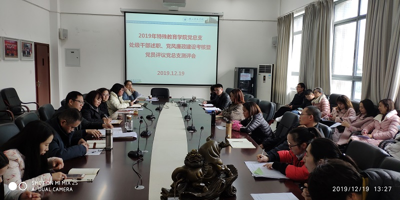 林天兴代表党总支就主题教育、服务型党组织建设、基层党建工作重点任务、党建工作成效等方面对总支一年来的工作进行了汇报,并从思想政治、业务工作、党建第一责任人职责、党风廉政建设等方面进行了个人述职;执行经理汪红烨从“德、能、勤、绩、廉”五个方面详细报告了2019年特教学院的实际工作,从教学、科研、人才培训、社会服务等方面进行详细报告,详细解读一年来的工作思路与工作要点。随后副经理章永、张梅就所分管工作和个人履职情况及党风廉政建设情况进行了汇报.