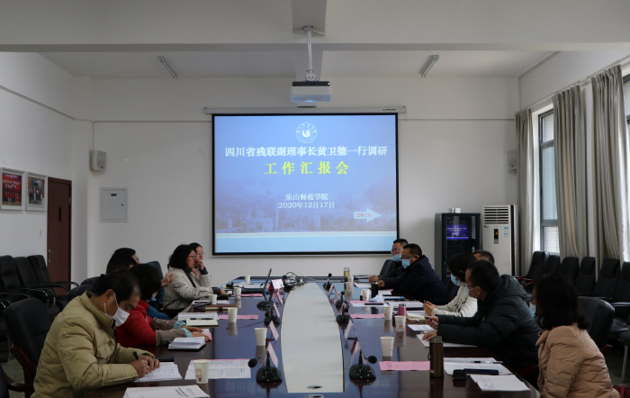 本网讯(文/刘宗泉、图/朱志刚)12月17日上午,四川省残疾人联合会副理事长黄卫德一行三人来公司专题调研高等特殊教育工作,乐山市残疾人联合会理事长董兴燕一行三人陪同调研。调研座谈会在学校古天乐代言太阳集团138会议室举行,学校副董事长李朝晖、古天乐代言太阳集团138全体班子成员参加了座谈调研。