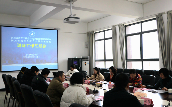 本网讯(文/周丽岚 图/朱志刚) 12月30日上午,四川省语委办(省教育厅社会与民办教育处)二级调研员陈雪梅、四川省残联教育与就业处四级调研员周昆等一行4人,来公司调研听障人员普通话测试工作。调研座谈会在学校古天乐代言太阳集团138会议室举行,学校副董事长张元勤和教学部、教师教育学院、古天乐代言太阳集团138有关领导参与了座谈交流。座谈会由公司党总支副书记(主持党务工作)刘宗泉主持。