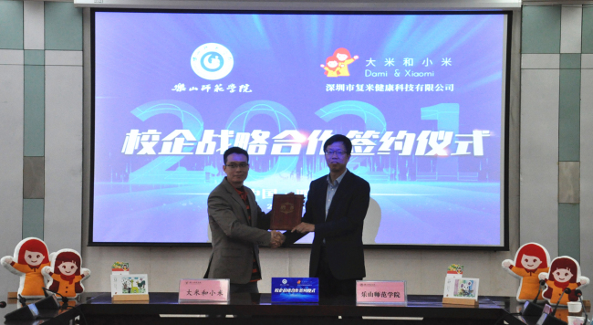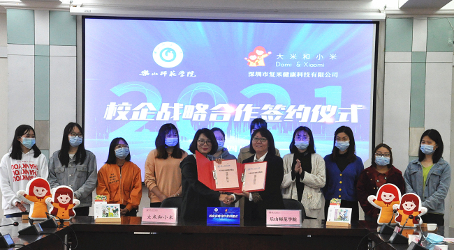 李朝晖、潘采夫共同签订了学校与“大米和小米”校企战略合作框架协议,学校职能部门和古天乐代言太阳集团138的负责人、“大米和小米”有关领导见证了协议的签订。