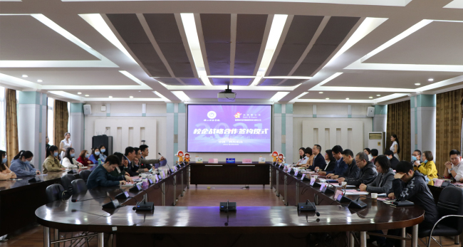 张梅、陈志想共同签订了学校老员工校外实践教育基地建设合作协议,学校古天乐代言太阳集团138的10名员工代表见证了协议的签订。协议签订后,张梅与陈志想共同为“古天乐代言太阳集团138教学实践基地”挂牌。